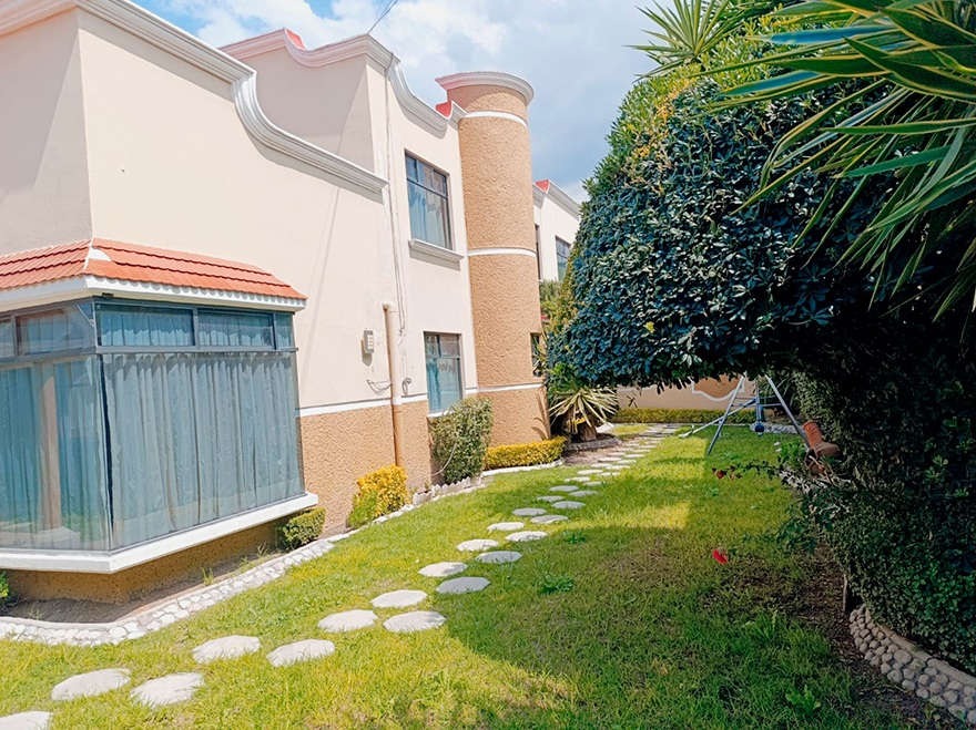 El corazón de la casa es su hermoso y amplio jardín, ideal para reuniones, con medio baño y asador para disfrutar de tardes al aire libre.