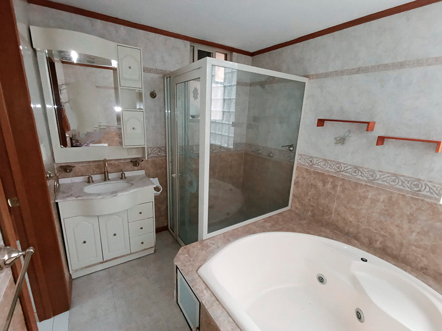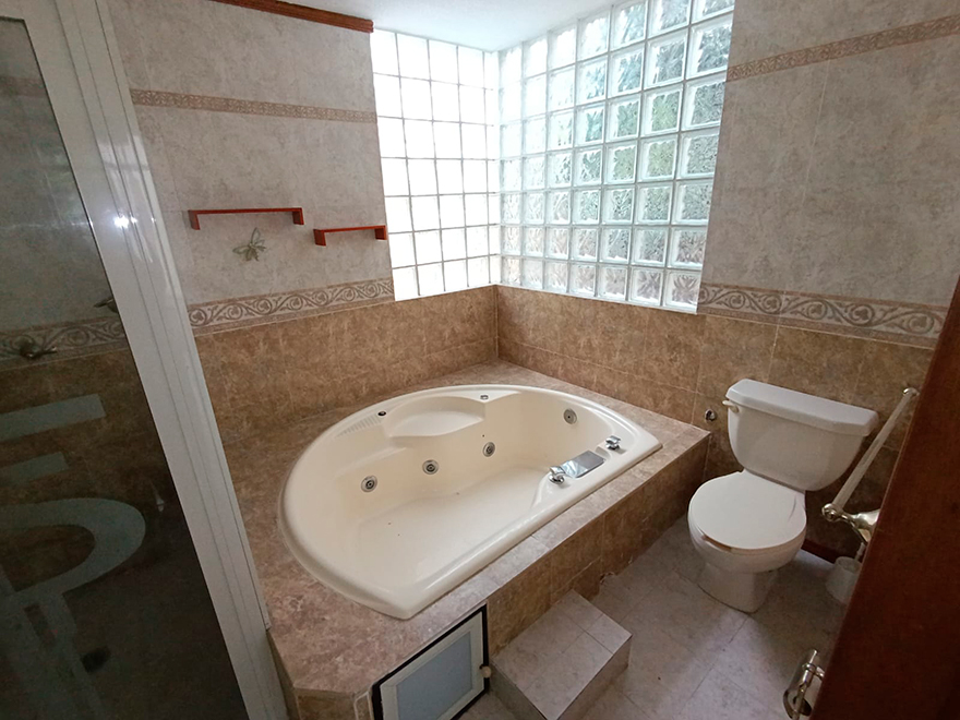 En esta planta también encontrarás una recámara principal tamaño king size con baño completo, tina y vista al jardín, además de una recámara matrimonial con clóset, baño completo adicional y patio de servicio techado con conexión directa al jardín.
