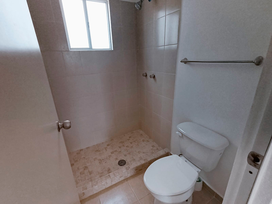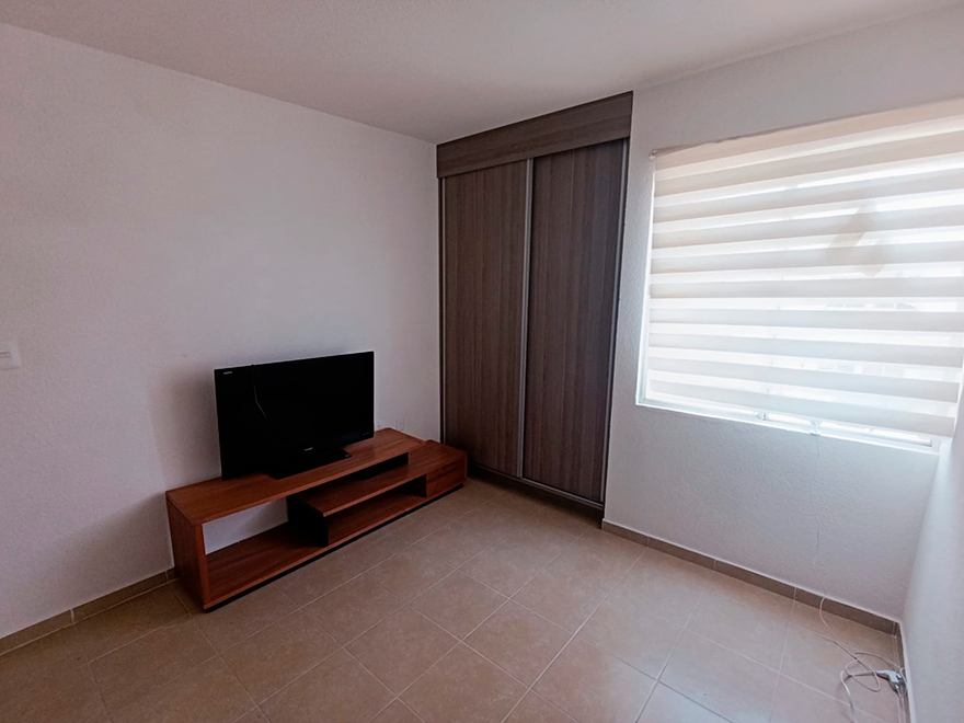 Dos Recámaras tamaño matrimonial, una incluye closet, mueble para TV y colchón Individual. Un baño completo para compartir.