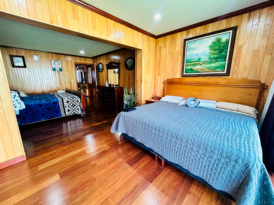 Recámara principal con vestidor, baño completo y vista al jardín.