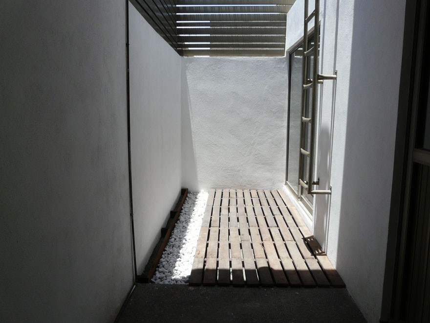 Planta Baja: Cochera abierta para 2 autos, recibidor, sala - comedor, medio baño, cocina equipada con estufa, patio de servicio bajo techo y jardín.