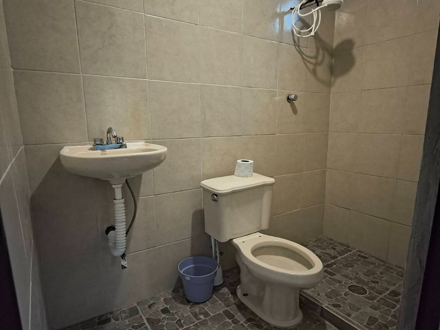 Casa de 90 m² de construcción con cocina, dos baños grandes y tres recámaras.