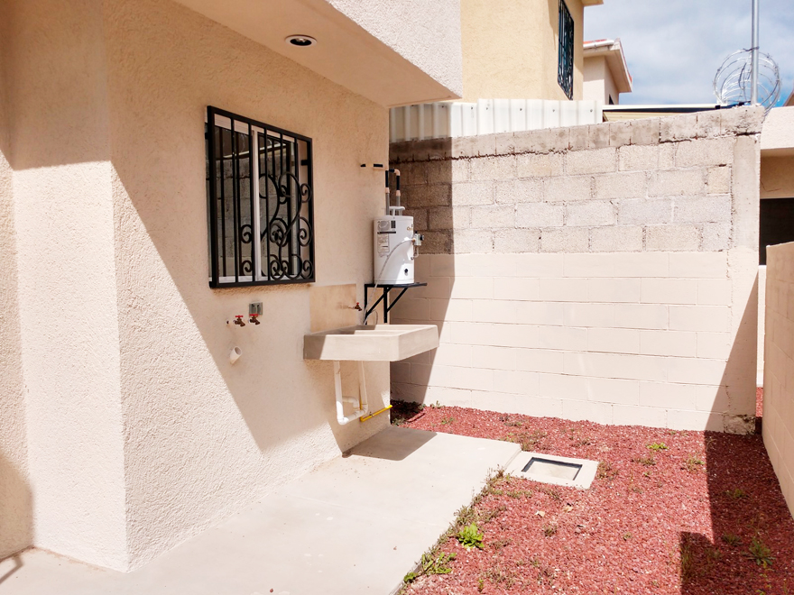 Planta Baja: Cochera Abierta para 2 Autos, Sala-Comedor, Cocina Equipada, Baño de visitas y Patio de Servicio con Pasillo a la Cochera.